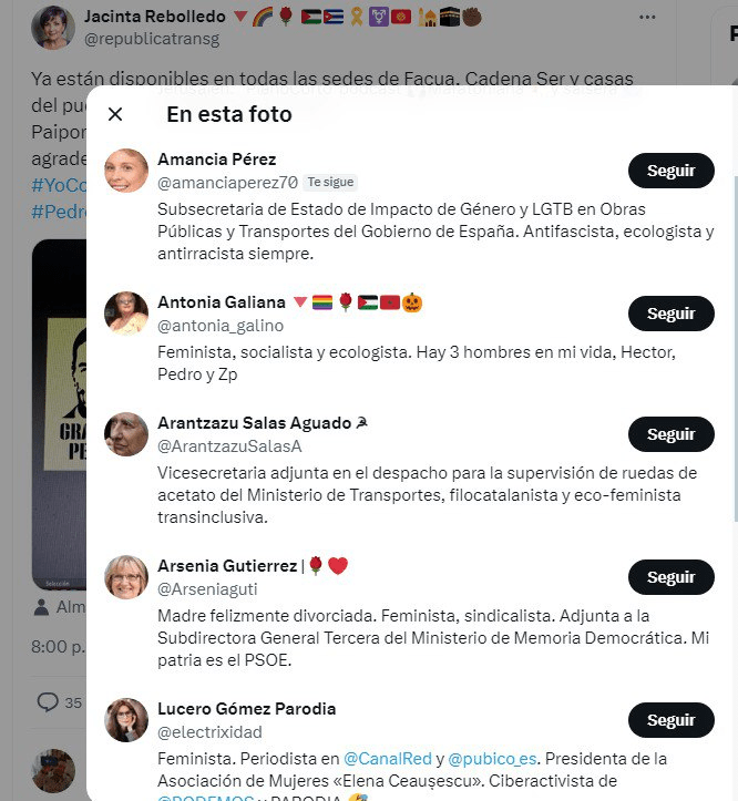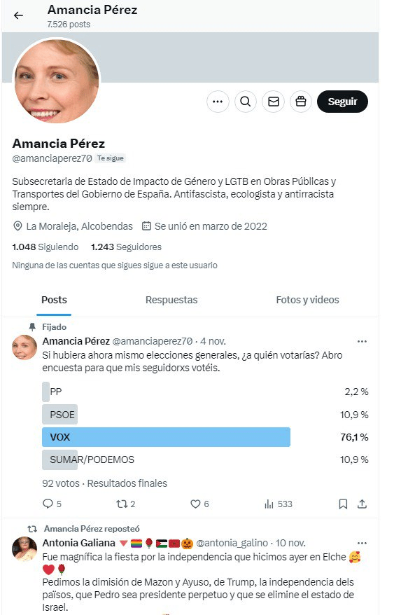 Si nos fijamos en qué perfiles son etiquetados en esta primera publicación encontraremos a otras de las cuentas de este trollcenter y que son las primeras en retuitear la publicación. Y al analizar estas cuentas la acción de falsa bandera resulta evidente pues encontramos desde supuestas periodistas de Canal Red que no existen hasta publicaciones en las que se afirma que no hay que denunciar el asesinato de un niño en Mocejón porque no es palestino o que no hay que criticar a Errejón por sus abusos sexuales porque es feminista. El ‘modus operandi’ de estas cuentas es simple: interactúan entre ellas y con cuentas de izquierdas y derechas, pero siempre haciendo el ridículo o caricaturizando a la izquierda.