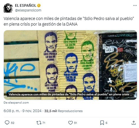 En los últimos días unas pintadas con la cara de Pedro Sánchez y distintos textos como “Sólo Pedro Sánchez salva al pueblo” o “Este pueblo lo salvó Pedro” han aparecido en redes sociales. Se trata de una nueva acción de falsa bandera amplificada desde un trollcenter vinculado a la extrema derecha.